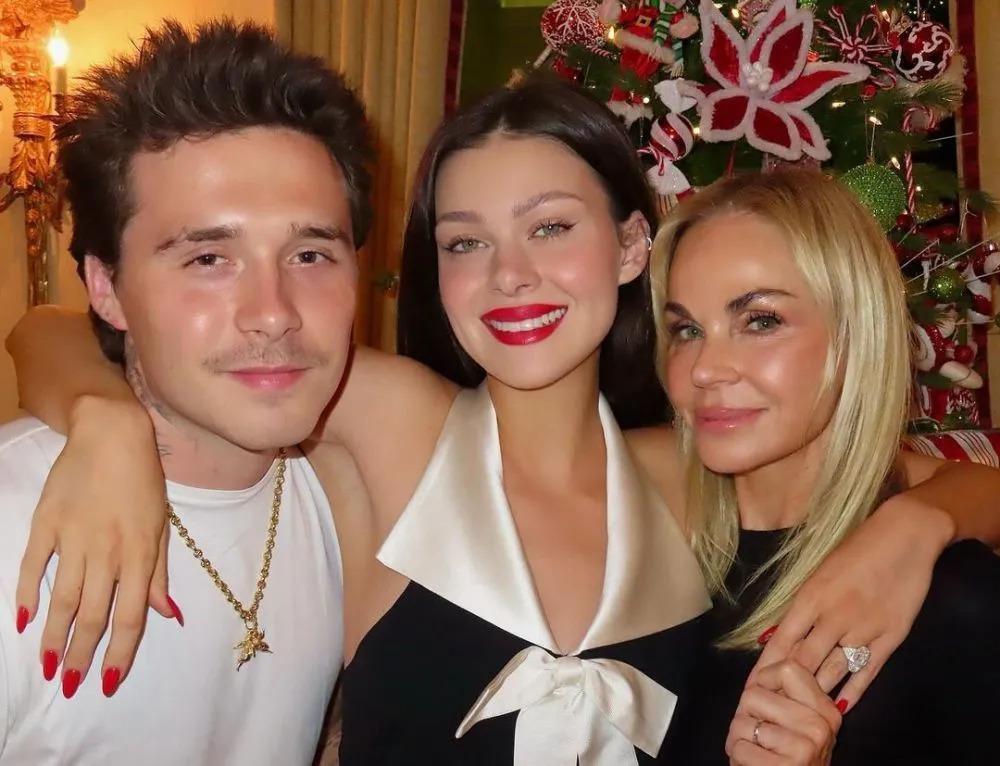 布鲁克林和妻子妮可拉 · 佩尔茨与年轻漂亮的岳母合影。