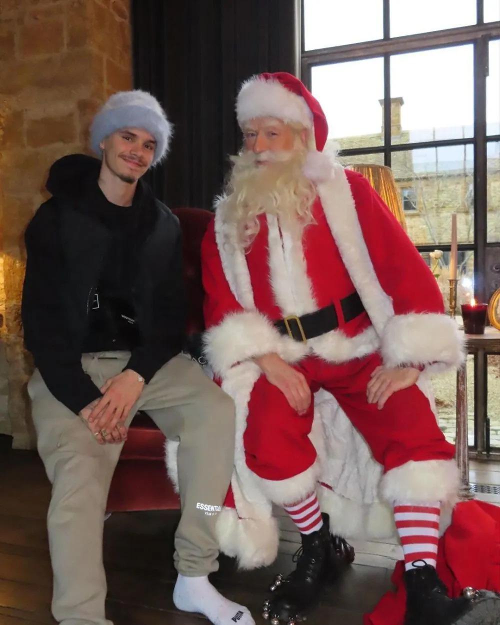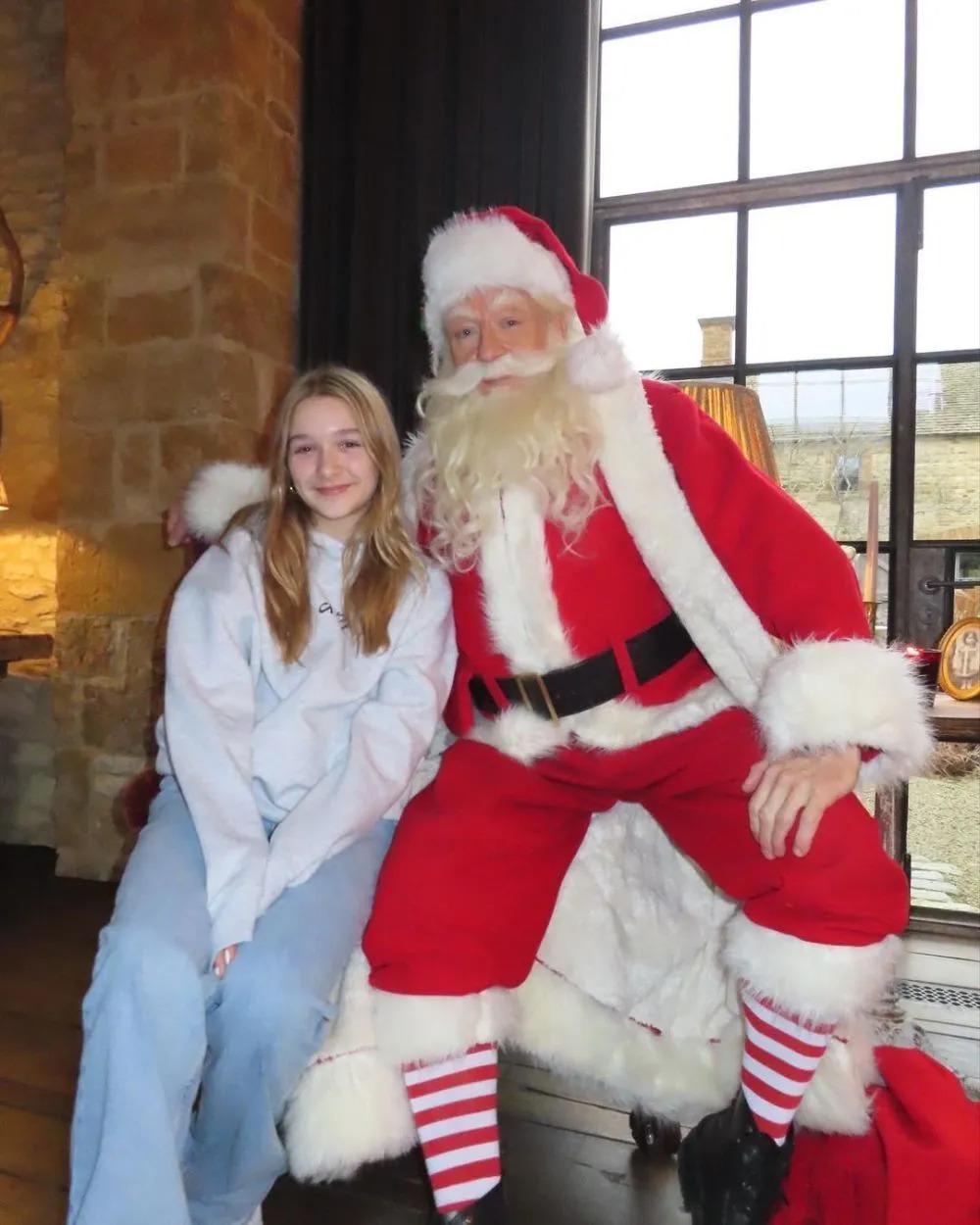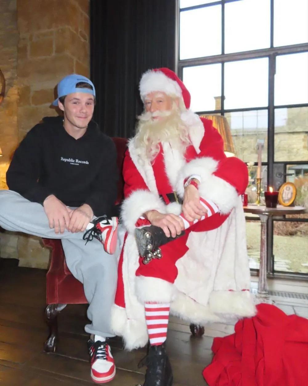 稍早时候,贝嫂也晒出一家人分别与圣诞老人的合影。48 岁的贝克汉姆红光满面,似乎处于微醺状态。