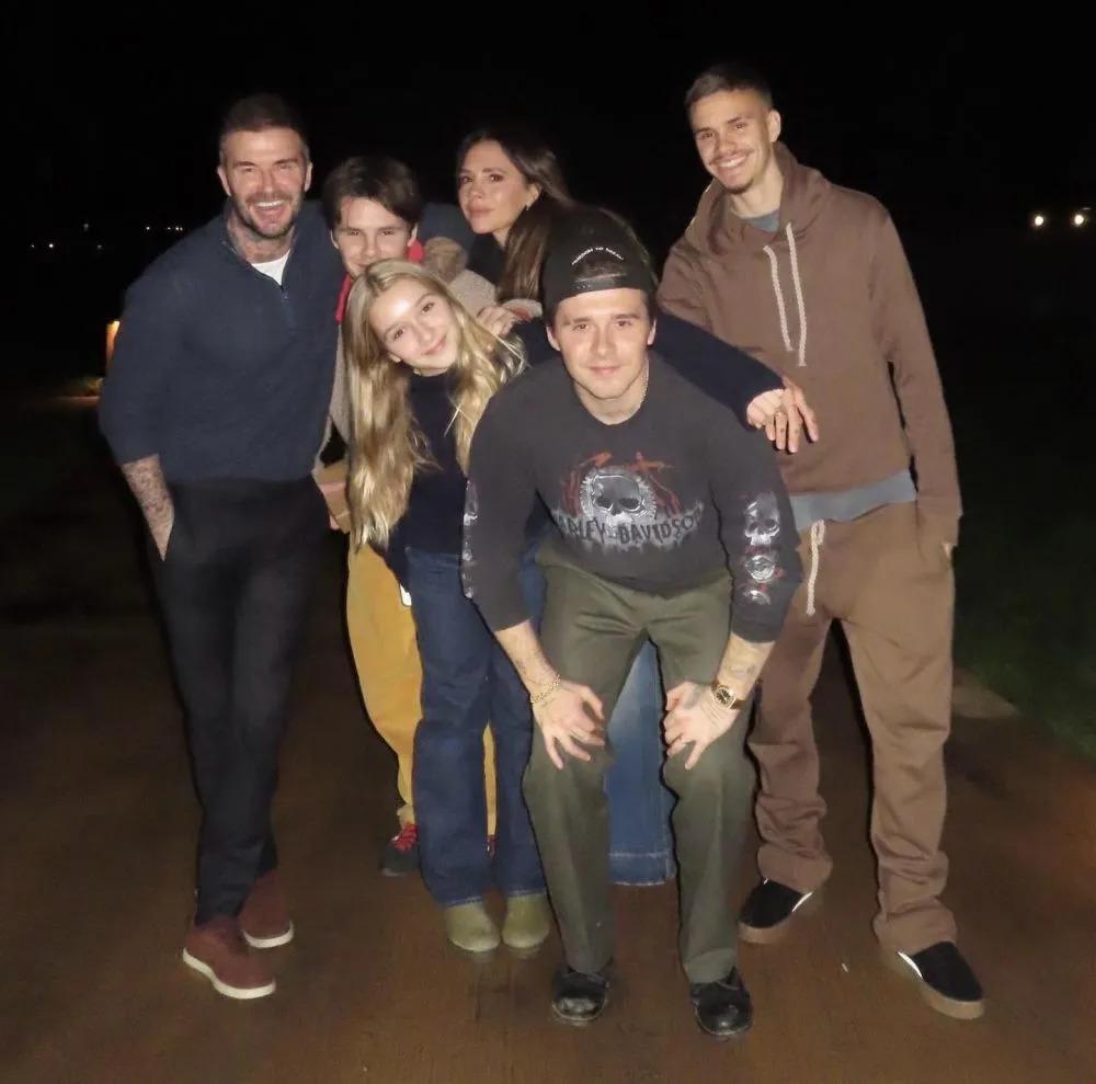 贝嫂分享的子女与圣诞老人合影中,只有罗密欧、克鲁兹还有妹妹小七,可见,大哥布鲁克林也是提前和老婆妮可拉一起回 " 娘家 " 啦。
