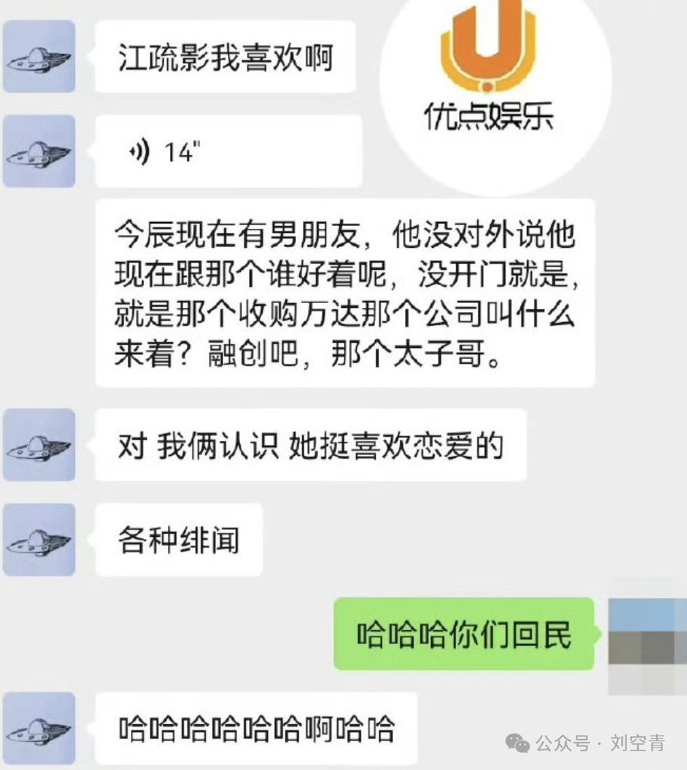 目前发布的聊天记录,提到了金晨啊江疏影等人。