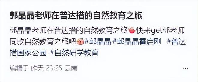 该老师称这是属于郭晶晶全家人的一日研学,主要是带领他们,孩子们一起领略神秘而美丽的自然风光!