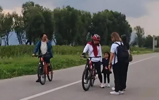 上一次郭晶晶和霍启刚是带着孩子们一起在云南的海边体验骑自行车。