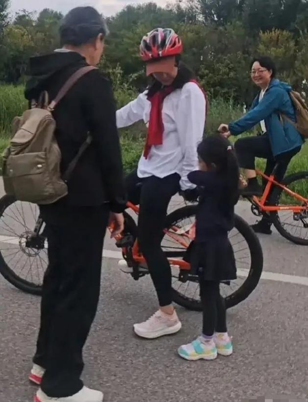 当时小女儿霍中怡要坐在妈妈自行车后面,跟外婆和妈妈在一起撒娇呢,哈哈。