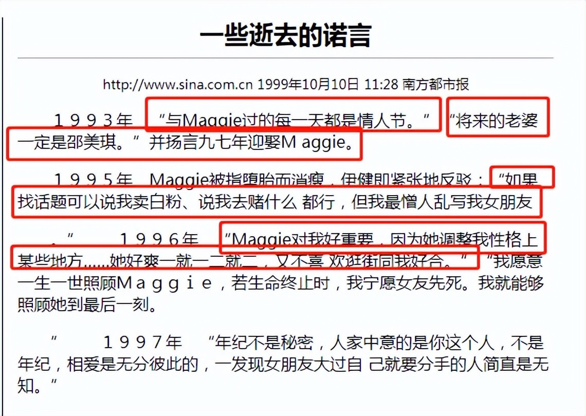 但这时外界认可的郑伊健女友是邵美琪,郑伊健曾当众信誓旦旦承诺:“将来的老婆一定是邵美琪。”“我愿意一生一世照顾邵美琪。”