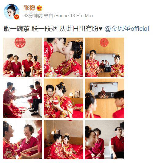 张檬曝光婚礼图片 两人同穿喜服敬茶画面温馨