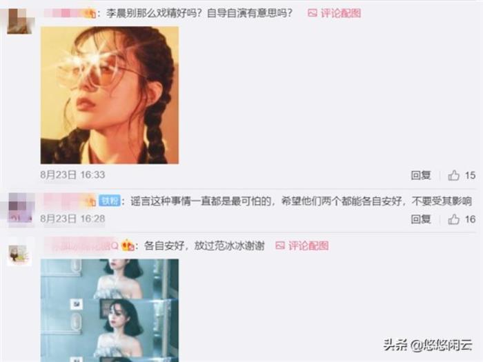 说实话就他们之间的那些事,真没人看得清楚,粉丝们护主也是一厢情愿:范冰冰和李晨都未必会感激。要说炒作,范冰冰应该是鼻祖,任何人和范冰冰比都是小巫见大巫,更别说李晨了,就算是李晨有心炒作,也是范冰冰的真传。要不李晨的粉丝们也是觉得女方粉丝过分:评论中某家粉也是醉了,到底谁缺热度?李晨今年很忙,作品很多,毫无必要这样捆绑炒作去被别人骂避免会淡出别人的视线,更不会没有底线带自己的母亲出场,不要已自己的小人之心度君子之腹了,谢谢您了。