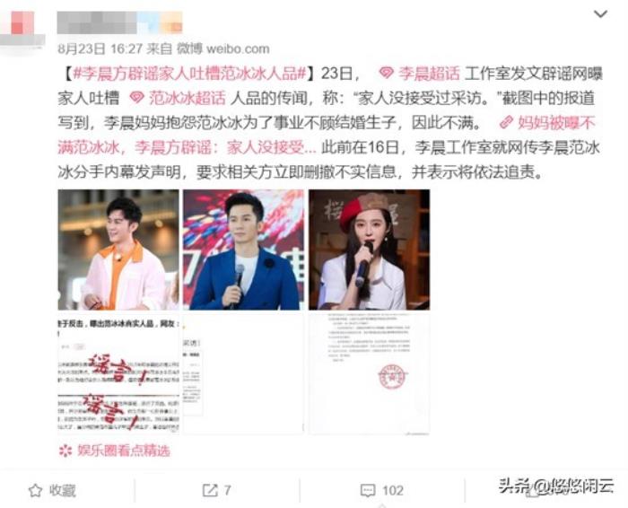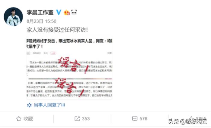 李晨辟谣家人吐槽范冰冰人品,遭女方粉丝怒怼是自编自导的戏精