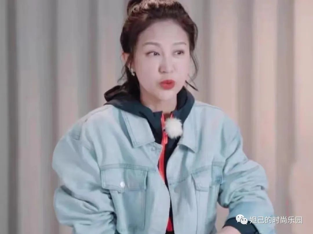 这张图片上,鲍蕾梳着一个非常少女的丸子头,内穿藏蓝色连帽卫衣。外套选择了一件非常学院风的牛仔上衣,单看服装的话,非常的减龄时尚,但是可能是因为鲍蕾这些年一直在做家庭主妇的原因,无论怎样的少女装扮,都掩饰不住身上浓浓的家庭主妇的气息。
