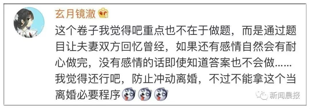 有网友觉得离婚考卷挺好