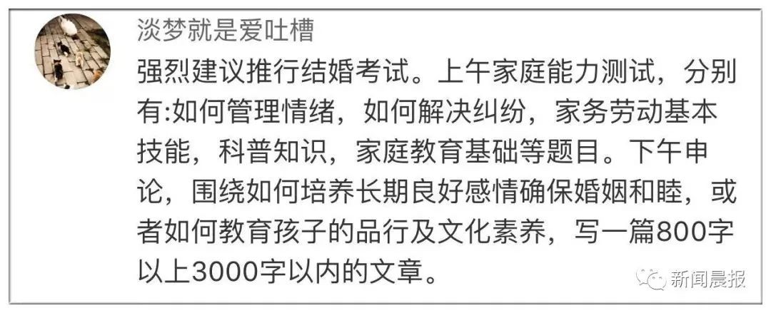 还有网友建议推行结婚考试