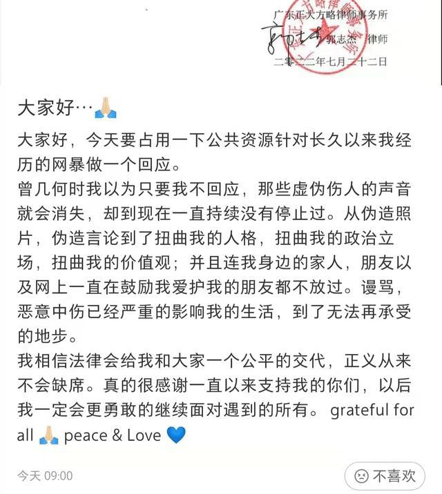高以翔去世后,女友 Bella 因为在社交平台晒自己的日常生活,遭受多年的网暴,无奈之下发出了律师函。