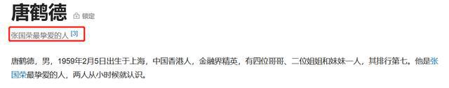 翻看网络上的百科,会发现,唐鹤德的名字后面有一个显眼的标签:张国荣最挚爱的人。