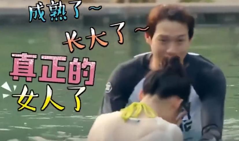 而到了泳池以后也是不老实,借着教李沁游泳对她一顿揩油,并且还一直说着“长大了”“成熟了”这类话,李沁也是尴尬的直捂脸。