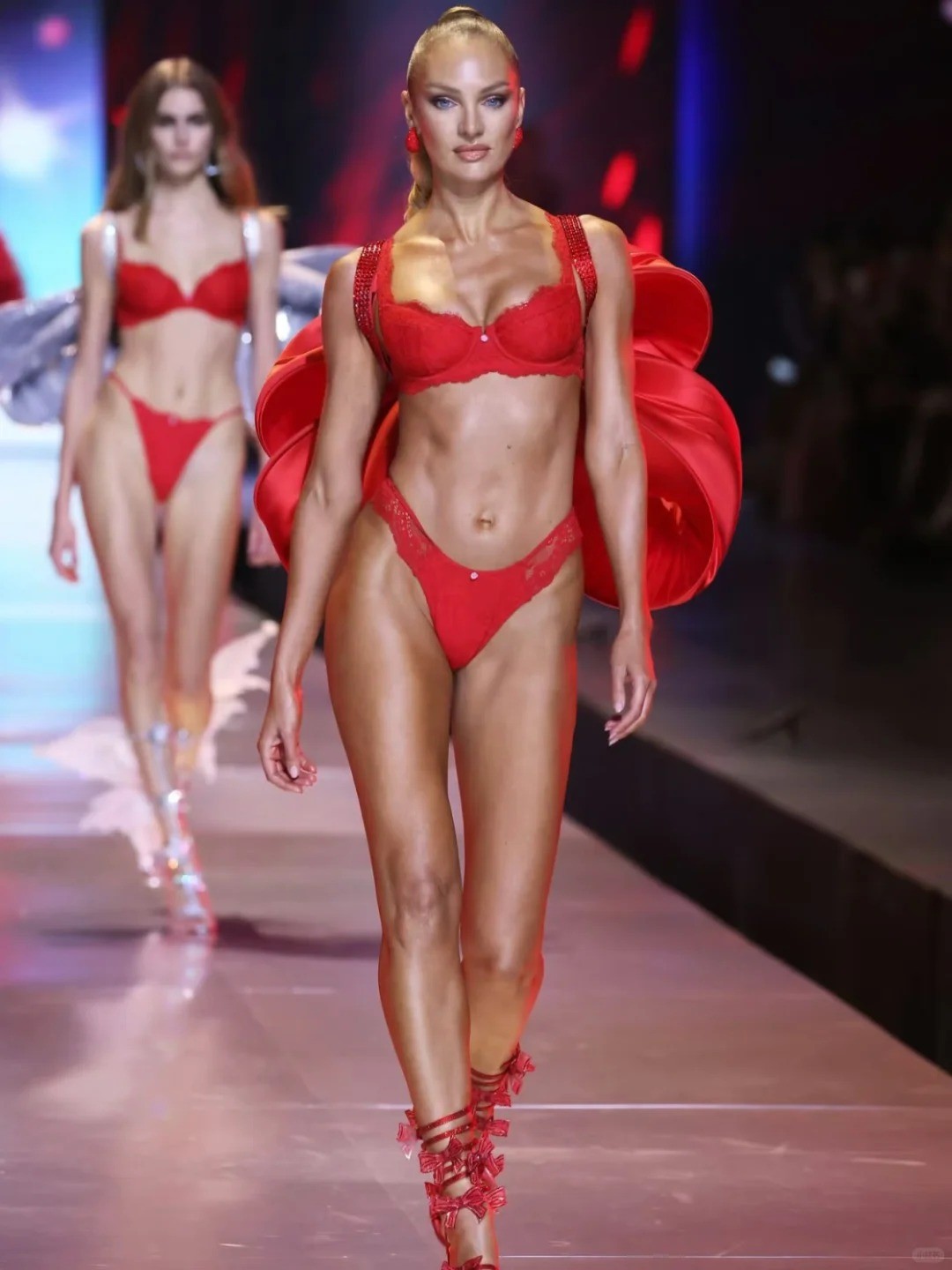 坎蒂丝・斯瓦内普尔的外在形象无疑是她吸引大众目光的重要因素。她拥有一头如阳光般耀眼的金发,精致的面容搭配深邃的眼眸,高挑且比例完美的身材,这一切都构成了她在 T 台上得天独厚的优势。