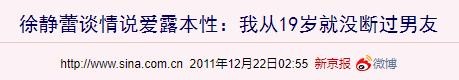 作为一个女强人,自己的感情生活总是如此“直白”的袒露在观众面前,换成许多人心中肯定会非常反感,自己的私人感情生活需要隐私和保护,可徐静蕾在采访中却对此表示:“我19岁开始身边就没缺过男人。”