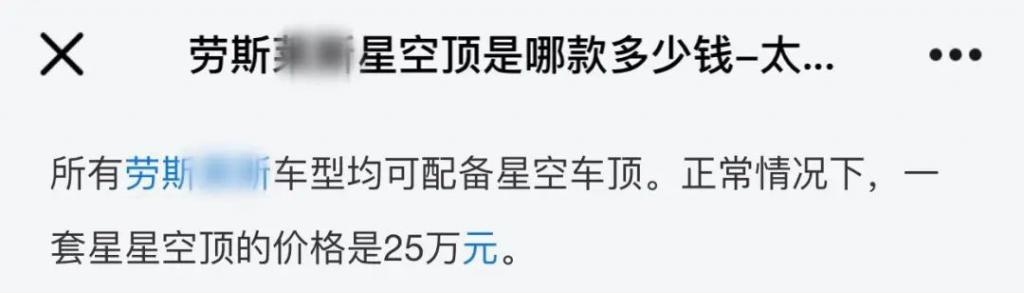 如果是后期单独给车装星空顶,售价是 25 万元,这比很多普通人买一辆代步车的价格还要贵。