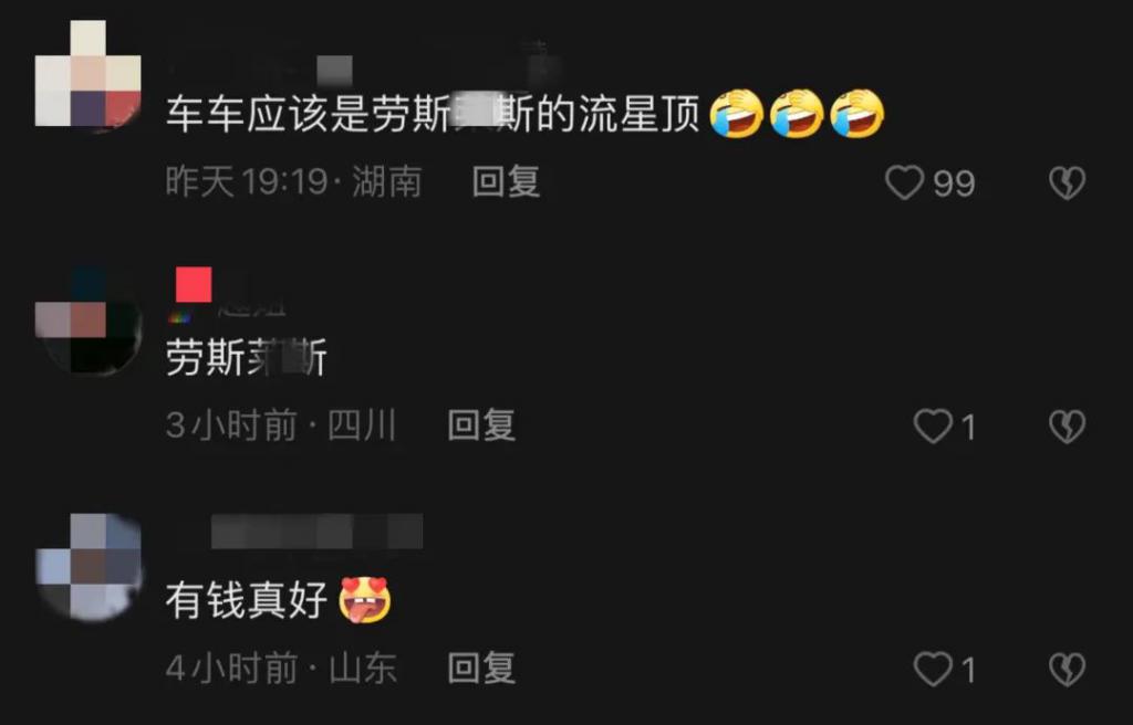 网友们一眼认出这是劳斯 x 斯的星空顶,纷纷感慨:有钱真好。