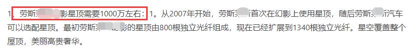 若是直接购买劳斯 x 斯品牌一辆顶级配置的豪车,里面自带星空顶,那么售价则高达一千万。