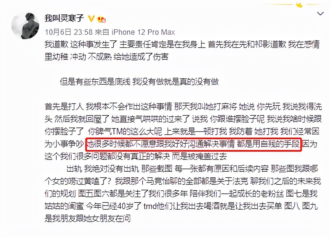 事情被曝光后,寒王这面很快给了反应,表示是自己不成熟,但是却没承认自己出轨,表示那些俩天的女生不是长辈就是自己的粉丝,对方称自己“哥哥”,也是直播间的昵称罢了。同时还表示祁影的性格有些激进,还会做出自残等等过激的举动。