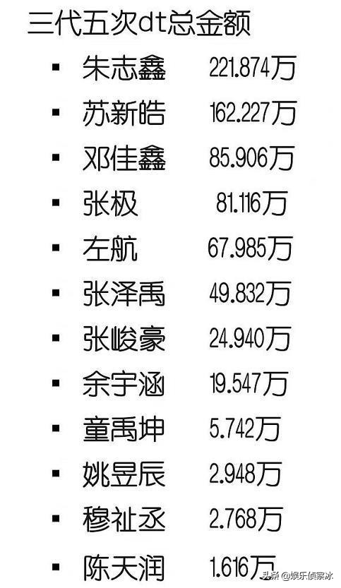 朱志鑫,苏新皓,邓佳鑫,张极,左航,张泽禹等几位弟弟都有着非常不错的数据,不少忠实支持者都在等待他们辉煌成团!