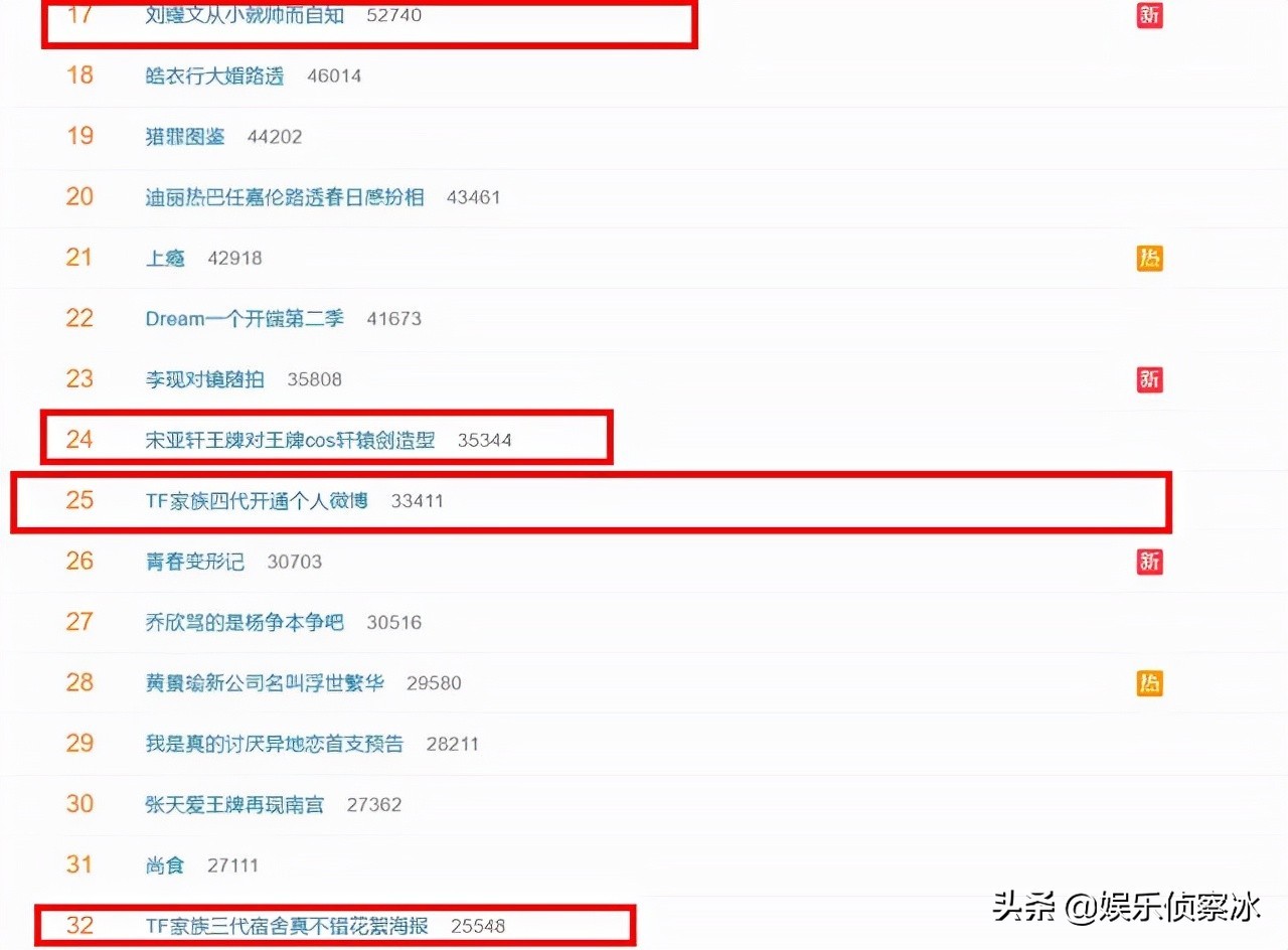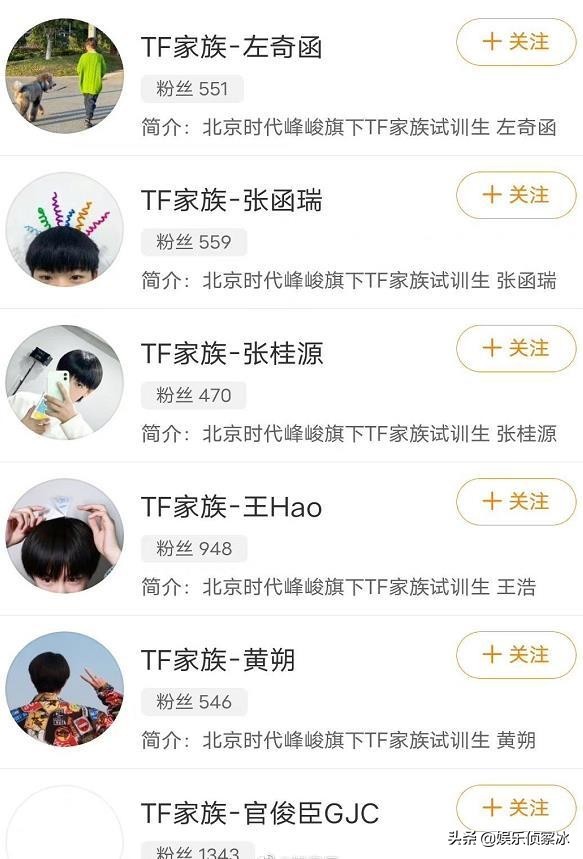 TF家族官博新增六个关注:官俊臣 黄朔 王浩 张桂源 张函瑞 左奇函。从热门文娱榜就可以知道TF家族人气多厉害,某方面也能理解不断出新的急切意图。