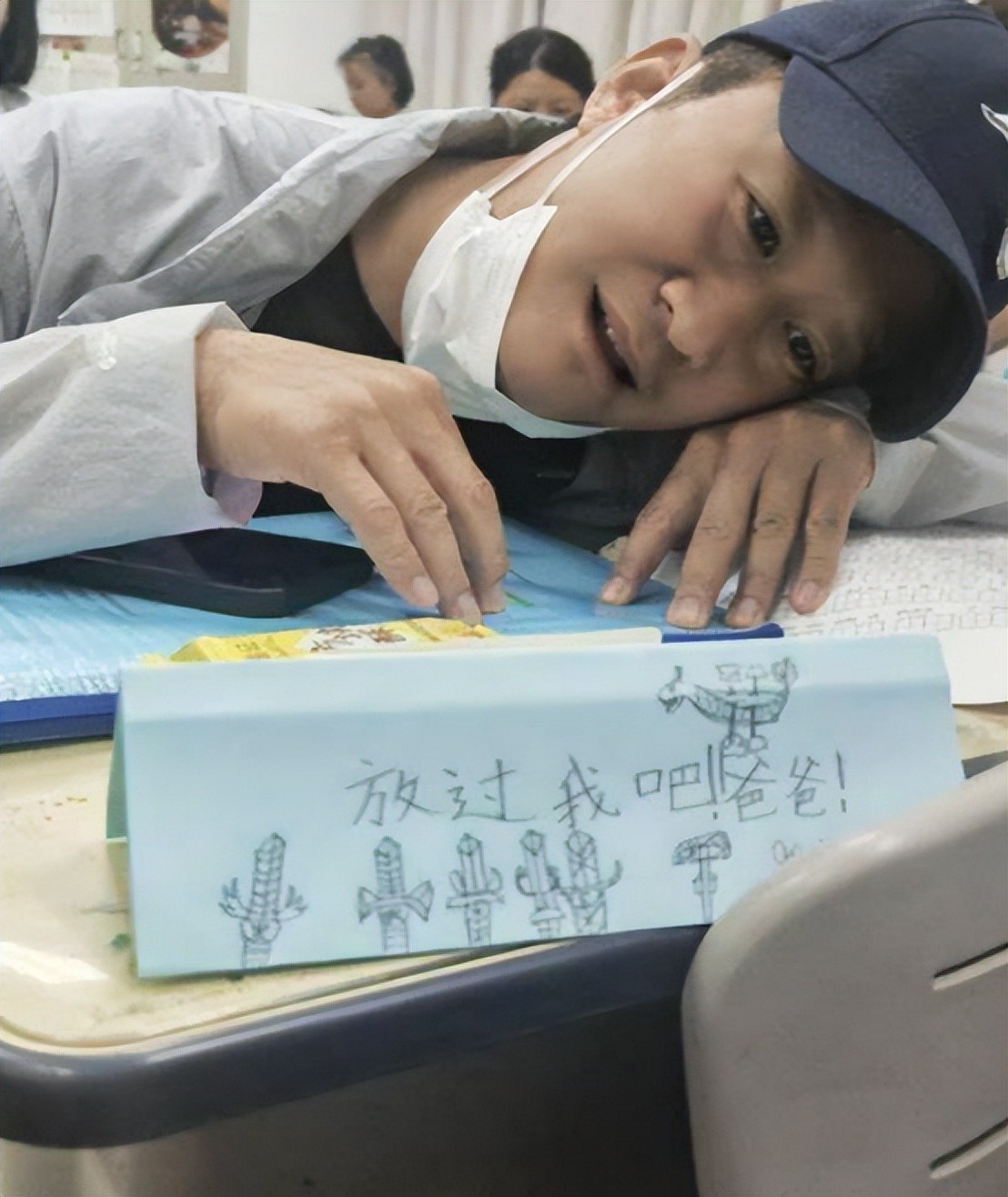 最抢眼的莫过于那句:“爸爸,放过我吧!”