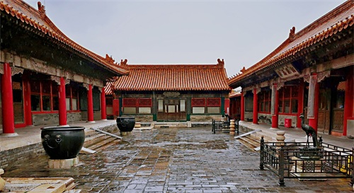 翊坤宫和东六宫里的承乾宫相对应。承是顺承,乾是天。这边的翊坤,翊是敬,坤是地。两边对应为“顺天敬地”的意思。