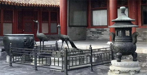 体和殿前也陈设了一对铜凤,加上翊坤宫前面的铜鹤和铜凤,及储秀宫前各一对的铜龙铜鹿共同组成了龙凤呈祥,六合同春。