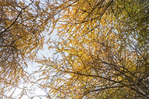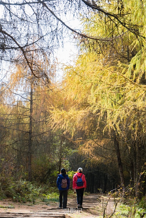 刚下车,就被远处金黄色的松林吸引了。