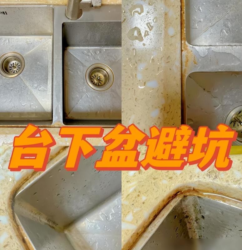 但简约就是美的设计却并不适用于所有的产品, 尤其是台下盆在台面下直接贴合,缝隙多了,清洁起来就很麻烦,食物残渣以及污垢容易积累在缝隙当中,随着时间的推移就会导致细菌滋生,不仅影响使用体验,还影响家居的卫生。