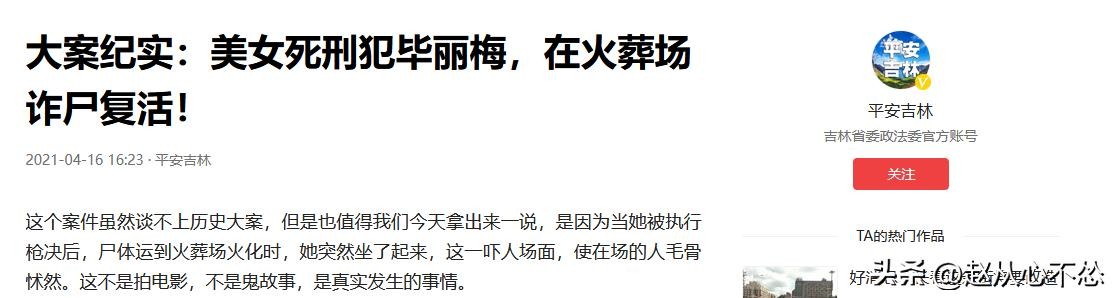 1:平安吉林,大案纪实:美女死刑犯毕丽梅,在火葬场诈尸复活。(2021-04-16)