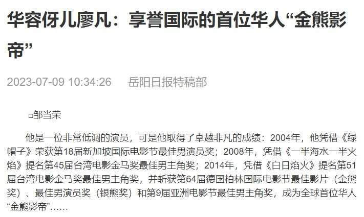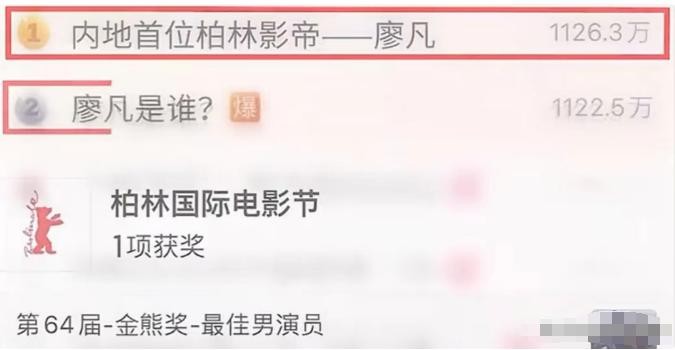 但那个时候观众对这个名字却完全没有印象,甚至获奖当晚“廖凡是谁”都被刷上了热搜。