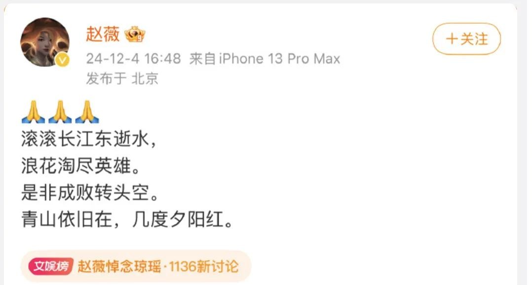 而林心如在得知消息后情绪失控,这种真实而强烈的反应,展现了她与琼瑶之间深厚的情感联系,黄奕则用一篇充满感恩之情的长文,诉说着琼瑶对她事业和人生的影响。
