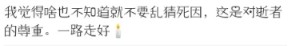 “我觉得啥也不知道就不要乱猜死因,这是对逝者的尊重。一路走好”