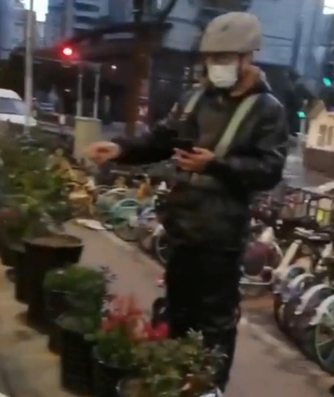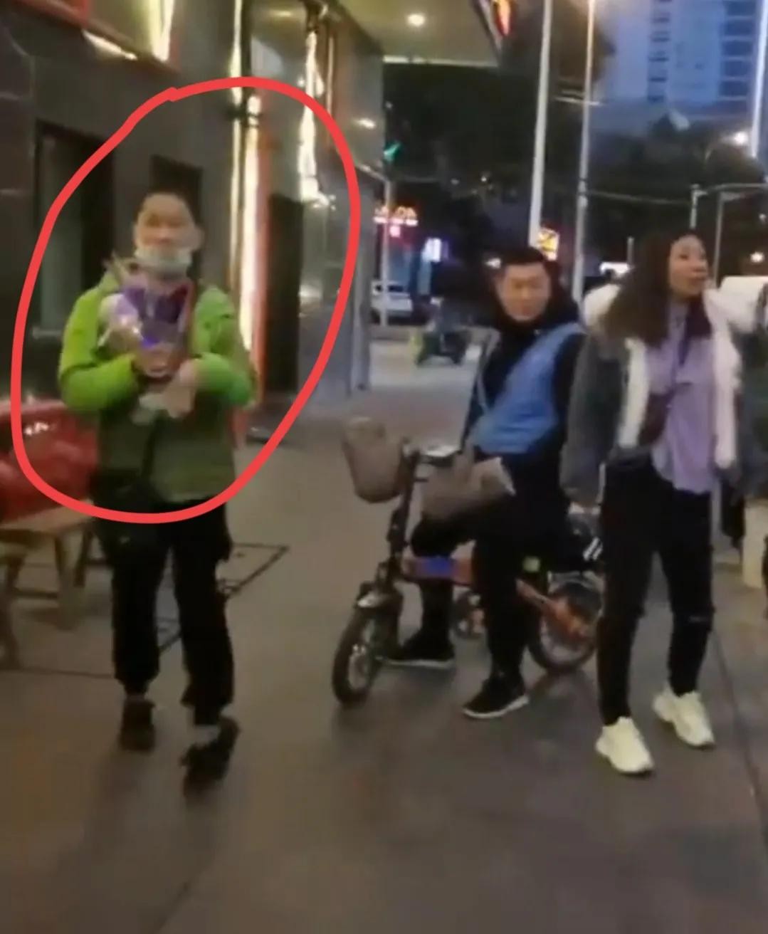 视频中,时不时有一个身穿绿色外套的男子,手里拿着玩具样的东西,走路一高一低,应该是个带点残疾的人。