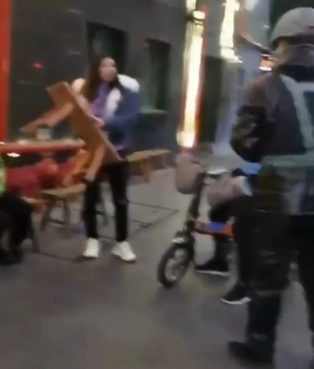 在宋某拿起凳子准备砸姜某时,拍摄男子说“哎,对,对”。大家像看戏一样,期待着高潮的到来。