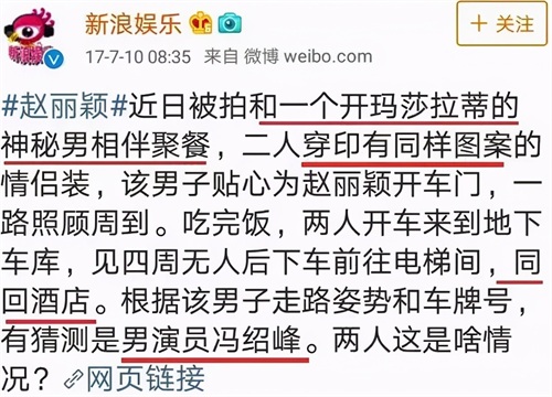 2017年9月,赵丽颖被拍在冯绍峰家过夜