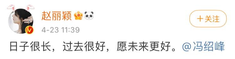而另一头的冯绍峰呢,也在忙着拍戏参加综艺,两个人除了过生日时“例行公事”般的互相祝福一下,也没什么新的互动,更别谈公开同框了。