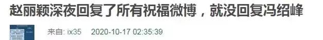 去年10月赵丽颖生日,回复了所有的祝福微博,唯独漏掉了冯绍峰