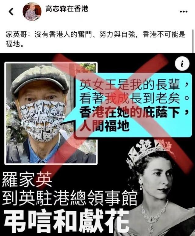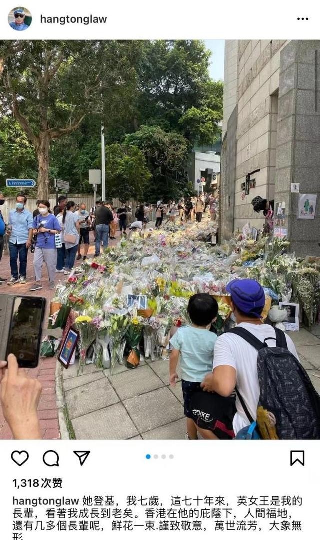 当时罗家英在海外社交平台分享悼念动态,并发文表示:她登基,我七岁,这七十年来,英女皇是我的长辈,看着我成长到老矣。香港在她的庇荫下,人间福地,还有几多个长辈呢,鲜花一束,谨致敬意,万世流芳,大象无形。