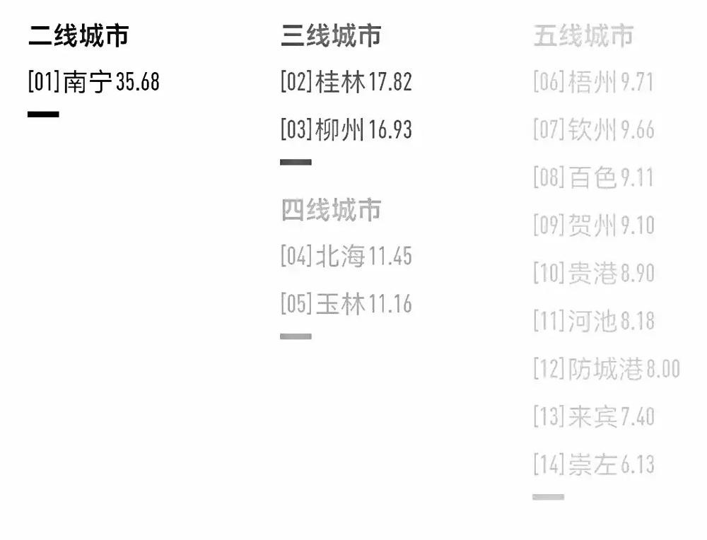 从以上分析来看,广西这14个地级市各有千秋,其中南宁稳居第一,无可撼动。