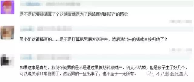 也有网友怀疑还没结婚纪晓波就给吴佩慈这么多钱,这是在转移财产吧?