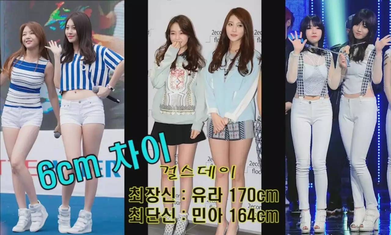 韩国各女团之间身高差异图(女团队内最高和最矮成员之间的身高差)