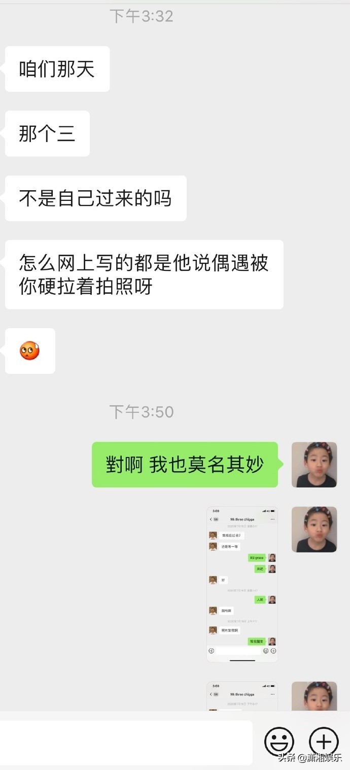 聊天记录证明,三儿在直播中撒谎了!他所谓的偶遇其实是他自己主动,他所谓的被周扬青硬拉着拍照也不过是无中生有。在聊天记录中,三儿不仅叫周扬青姐,还两次向她索要照片,倒是周扬青一副完全未放在心上的样子。