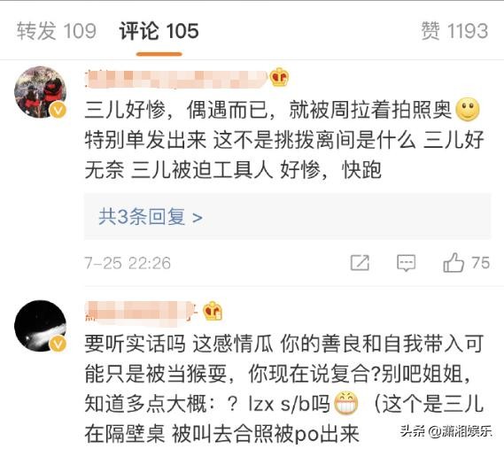 当罗志祥粉丝发现三儿跟周扬青私底下一起喝酒,酒后还拍亲密合照时,三儿的处境变得一言难尽。“怎么回事?你居然合照。你背弃了你的哥,你让我们好失望,取关。”