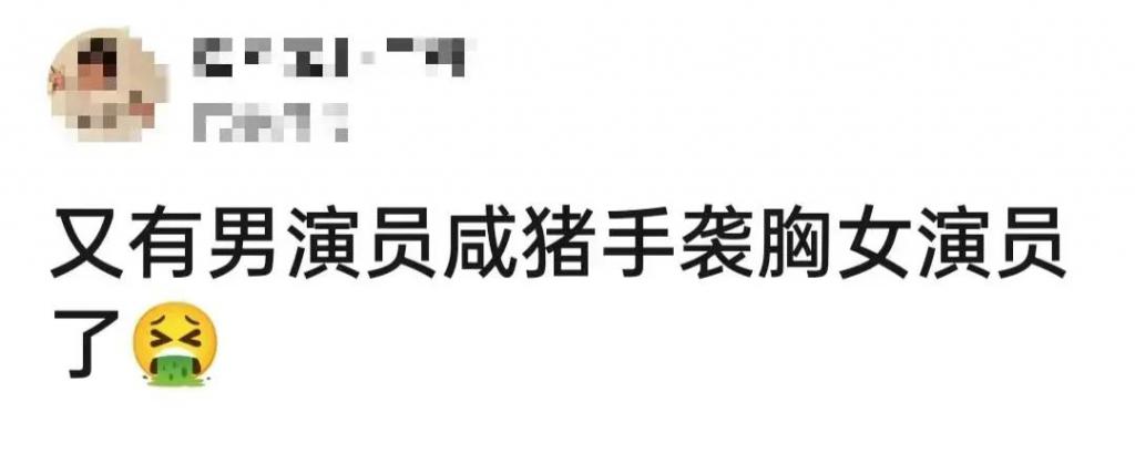 其实像这种女演员被袭胸的情况在演艺圈并不少见,就在前不久,张翰在新剧中袭胸王晓晨就引起了不小的争议。