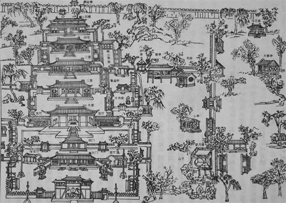 南关街最西头的路南临街处,今天的胜利宾馆一带,以前此处是一家销售瓜果的铺子,主人姓杨。紧邻着杨姓瓜果铺的东面,是侯家醋坊、樊家宅院、临卓客店,还有一座二层小木楼,美其名曰'广川楼'。登楼北望,对面临街全是杂货铺、锅盔铺、车马店以及加工金属器皿的商铺。旧时候这一带商家云集,很是热闹。一九七五年,在杨姓人家瓜果铺子的位置建起了胜利饭店,从瓜果铺到临着街面的结核病院,还有广川楼等老式房屋不知不觉间就消失了。