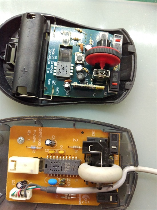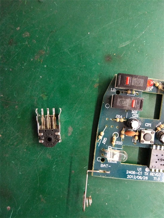自己修机器的电脑上用的无线鼠标,这几天滚轮开始乱跳,网页滚动,滚下去又自己滚回来。。。特别烦人,测试用的机器上鼠标滚轮也是乱跳,趁着这会没什么事都拆开捣鼓一下,东西不值钱,但是咱们不是一直提倡节约嘛,哈哈。