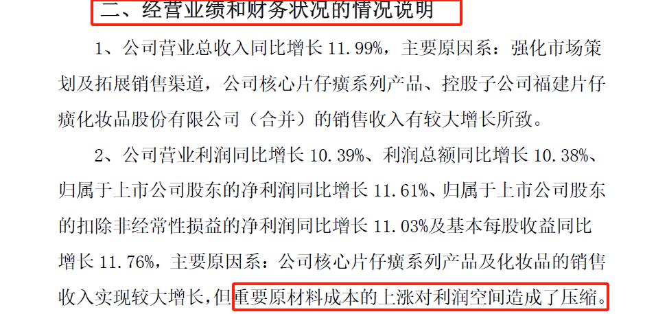 而原料持续涨价后,生产厂商的成本势必增加,这进一步降低了片仔癀的盈利能力。二季度增收不增利的原因就在于此。