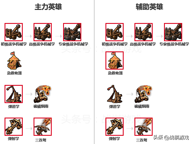 由于三连弩是必须学的,所以前置的子技能:弹射就必须学,因此实际上只能在急救和弹道里选一个。急救可以降低战损,弹道攻城有用。自己酌情选择吧,这种选择没什么对错,主要看局面。